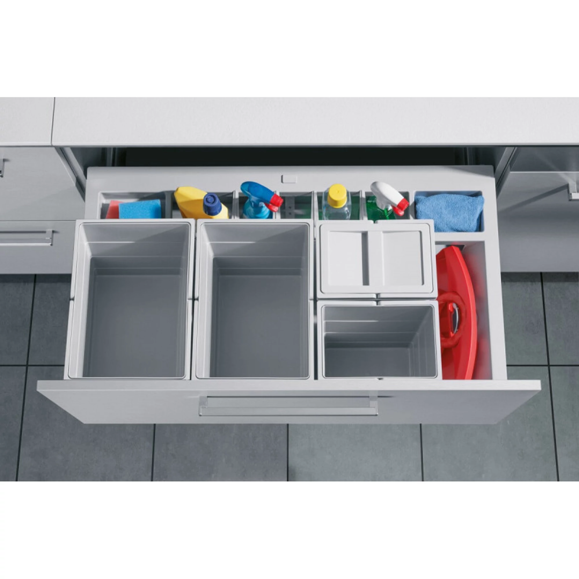 - Fiókba építhető szelektív hulladéktároló 900 mm szélességű szekrényhez.