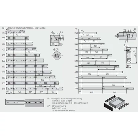H45 PRESTIGE teljes kihúzású, golyós fiókcsúszó 300 mm