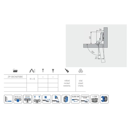 Közézáródó kivetőpánt 35 mm, eurocsavar nélkül