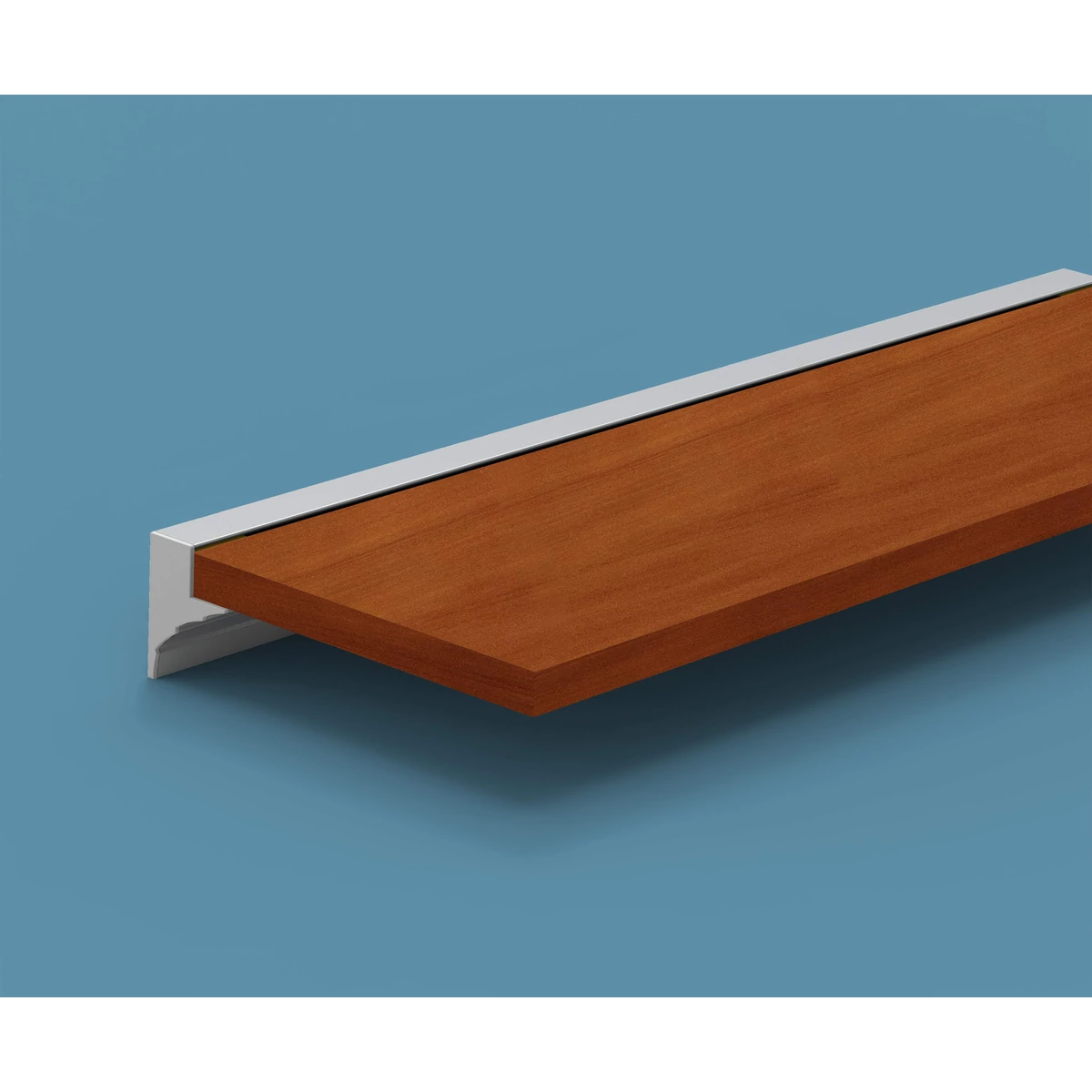 Elegáns formájú alumínium polctartó profil, mely különböző hosszúságokban alkalmazható, akár egyedi méretben is. Szín: eloxált alumínium (kérésre fehér vagy fekete színben is elérhető) A polcok egyszerűen behelyezhetők a profilba, és szükség esetén a csúszásmentesség kétoldali ragasztóval biztosítható. Felszereléskor ütközésig kell a prolfilba helyezni, mely által a polc stabilan a helyén marad. Az alkalmazható polcok 18 mm vastagságúak lehetnek. A profil teherbírása: 35 kg A szett tartalma: Laminált polc (0,4 mm-s élzárással) Fali profil Szerelőkészlet (facsavar, tipli, kétoldali ragasztó, véglezáró) Igény esetén egyedi méretben és színben is kérhető a termék. Maximális hosszúság: 200 cm Maximális szélesség: 40 cm