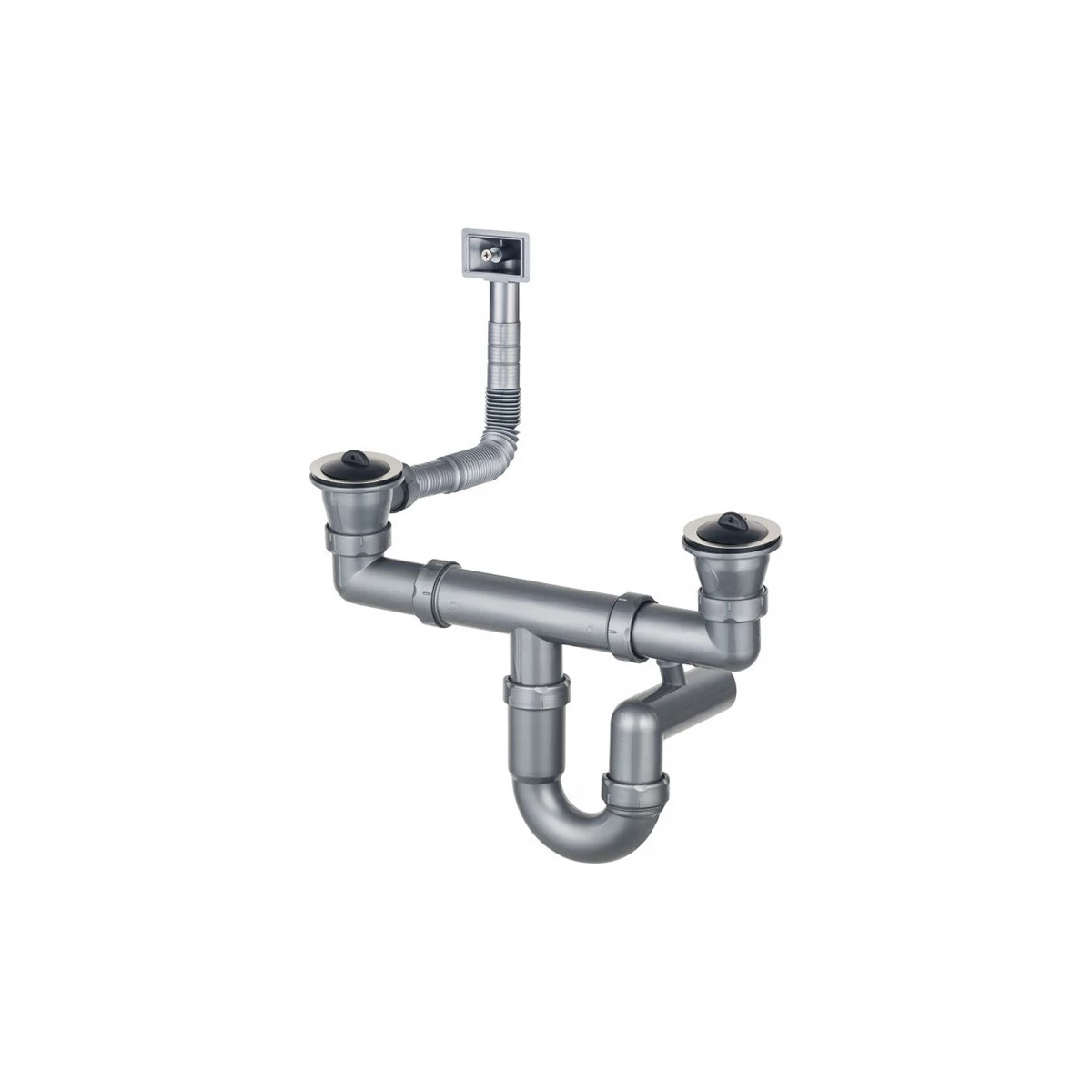Lefolyógarnitúra, bűzelzáró szifonnal, 2 medencés 1 1/2" rozsdamentes mosogatóhoz