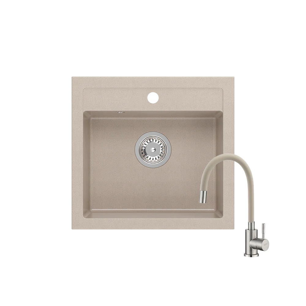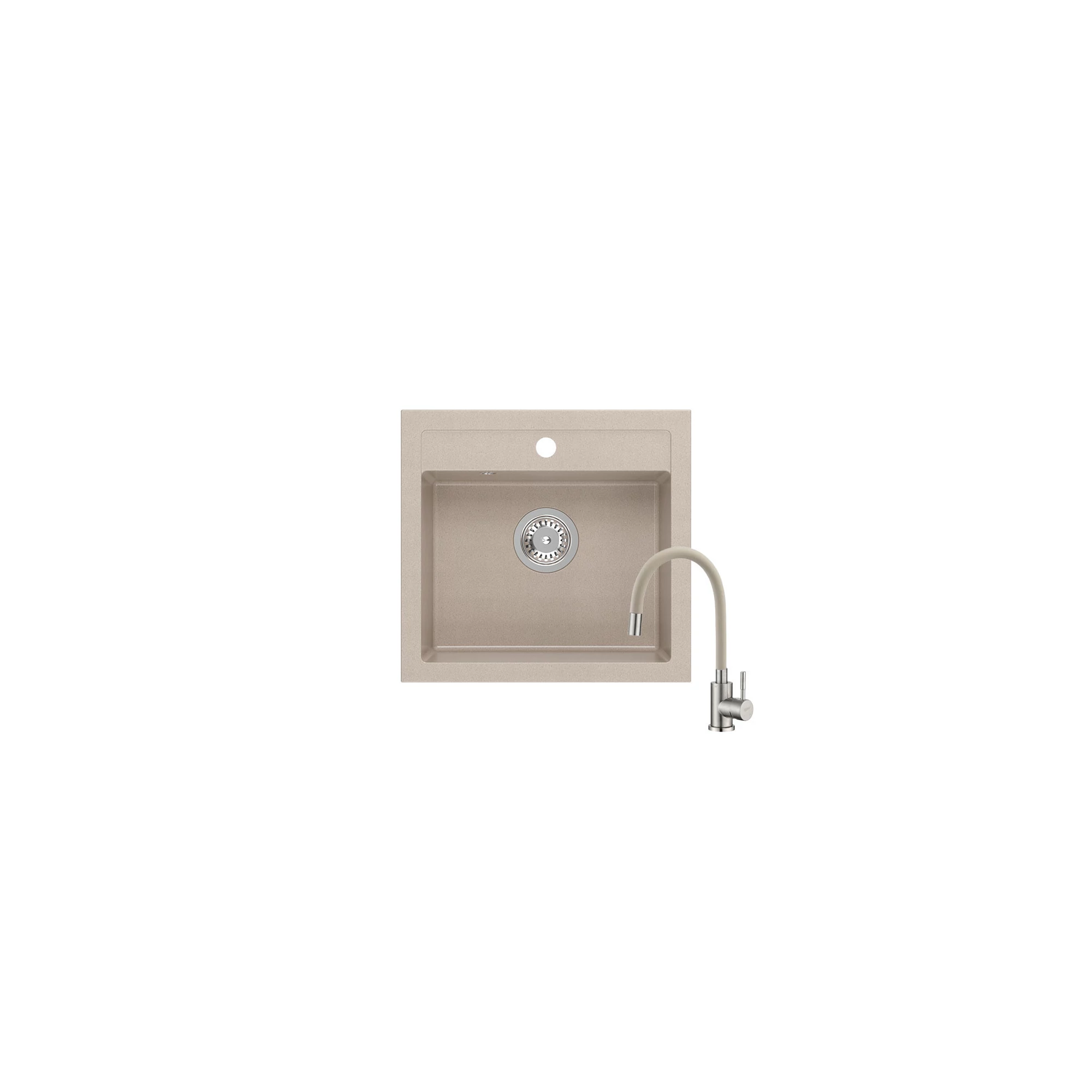 JOHNNY 500 x 470 mm beige gránit mosogatótálca + rozsdamentes acél csaptelep beige, flexibilis kifolyócsővel